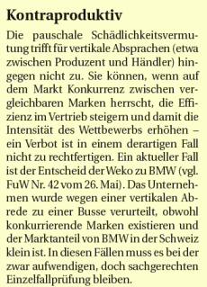 Peter Morf widmet in der Zeitung Finanz und Wirtschaft vom 4. Juli 2012 (S. 23) dem vorgeschlagenen, sehr umstrittenen Paradigmenwechsel im Kartellgesetz einen sehr lesenswerten Kommentar. Nachfolgend präsentieren wir mit freundlicher Genehmigung des Autors einen Auszug aus dem Kommentar und einen Link zum Artikel.