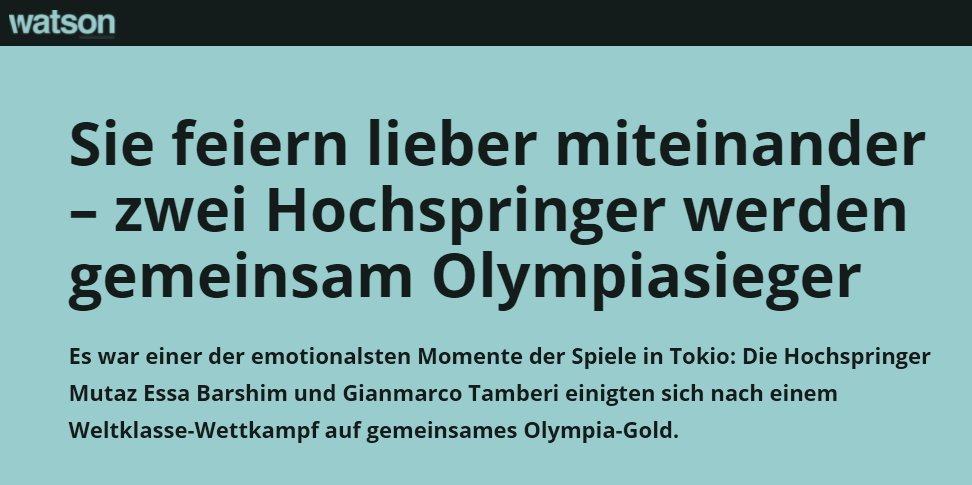 Ich verstehe nicht recht, warum das harte Kartell von Bershim und Tamberi in der Presse so positiv beurteilt wird – Fairness, Sportlichkeit, Freundschaft und der guten Dinge mehr…